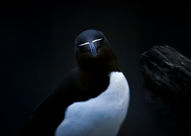 Ave Razorbill en contraste de sus colores blanco y negro.